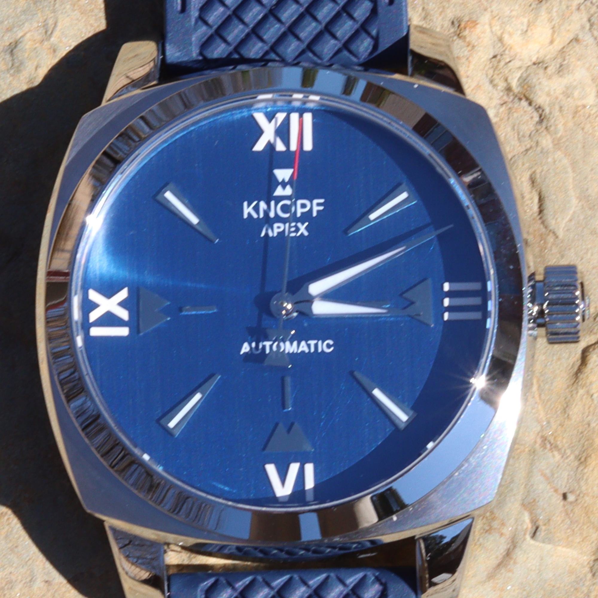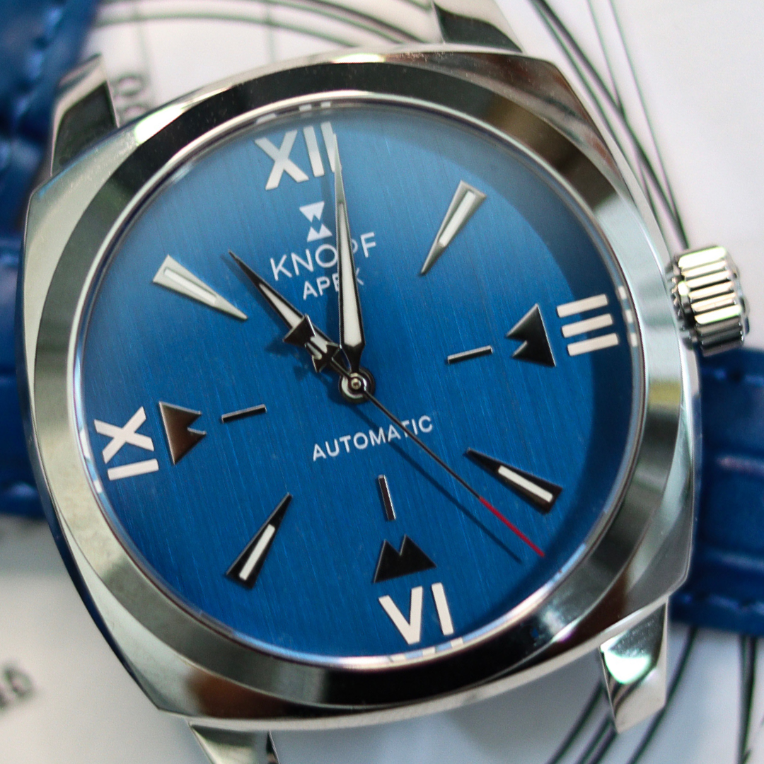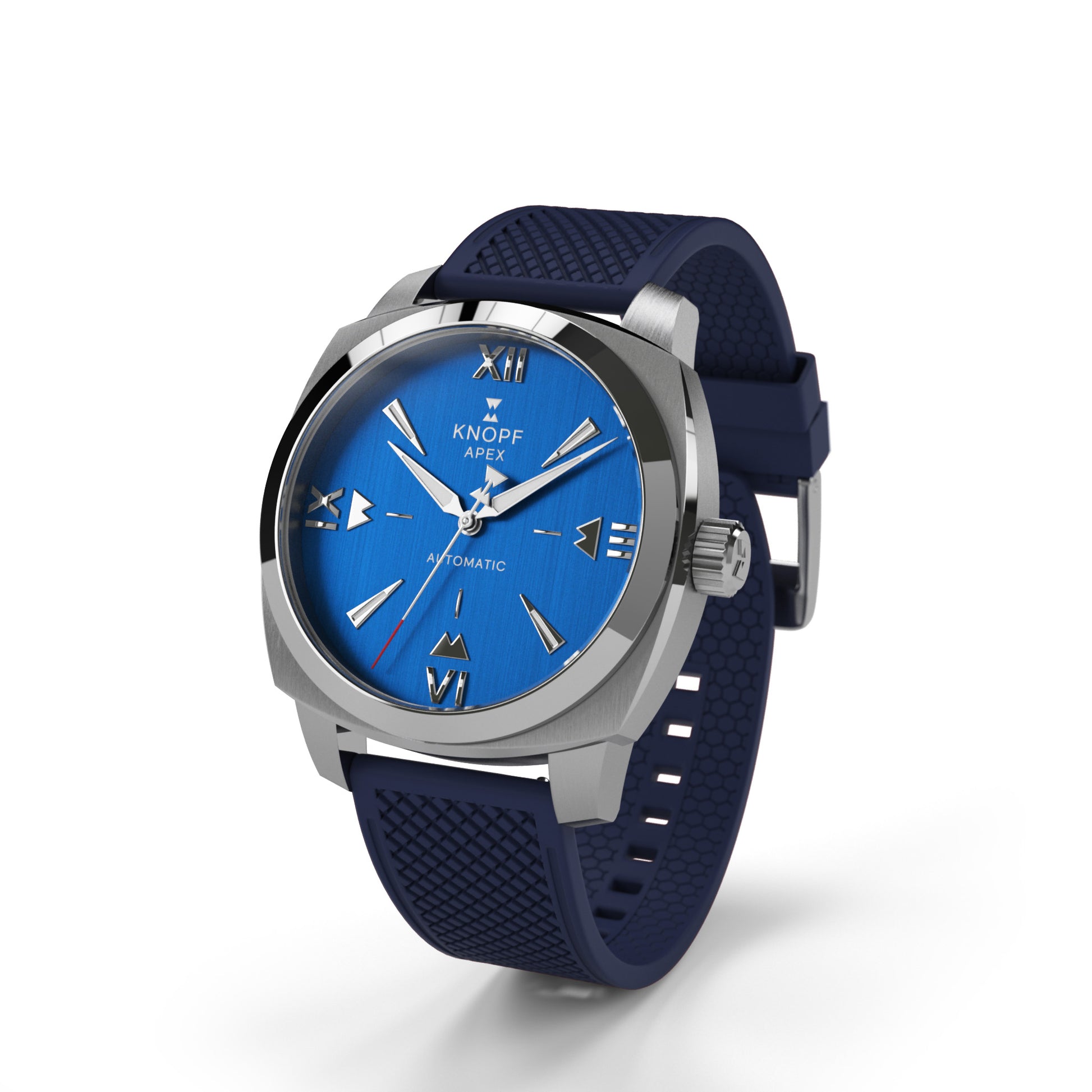 The KNOPF APEX showcases a handcrafted dial that’s unmistakably ours—bold, refined, and built to stand out. Deep vertical brushing and striking geometric forms create a mesmerizing play of light, turning every glance into an experience. Designed to command attention, this is no ordinary watch—it’s a game changer.