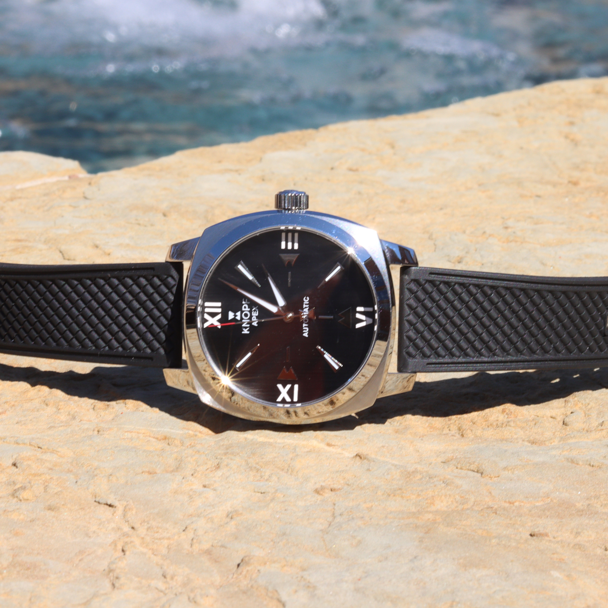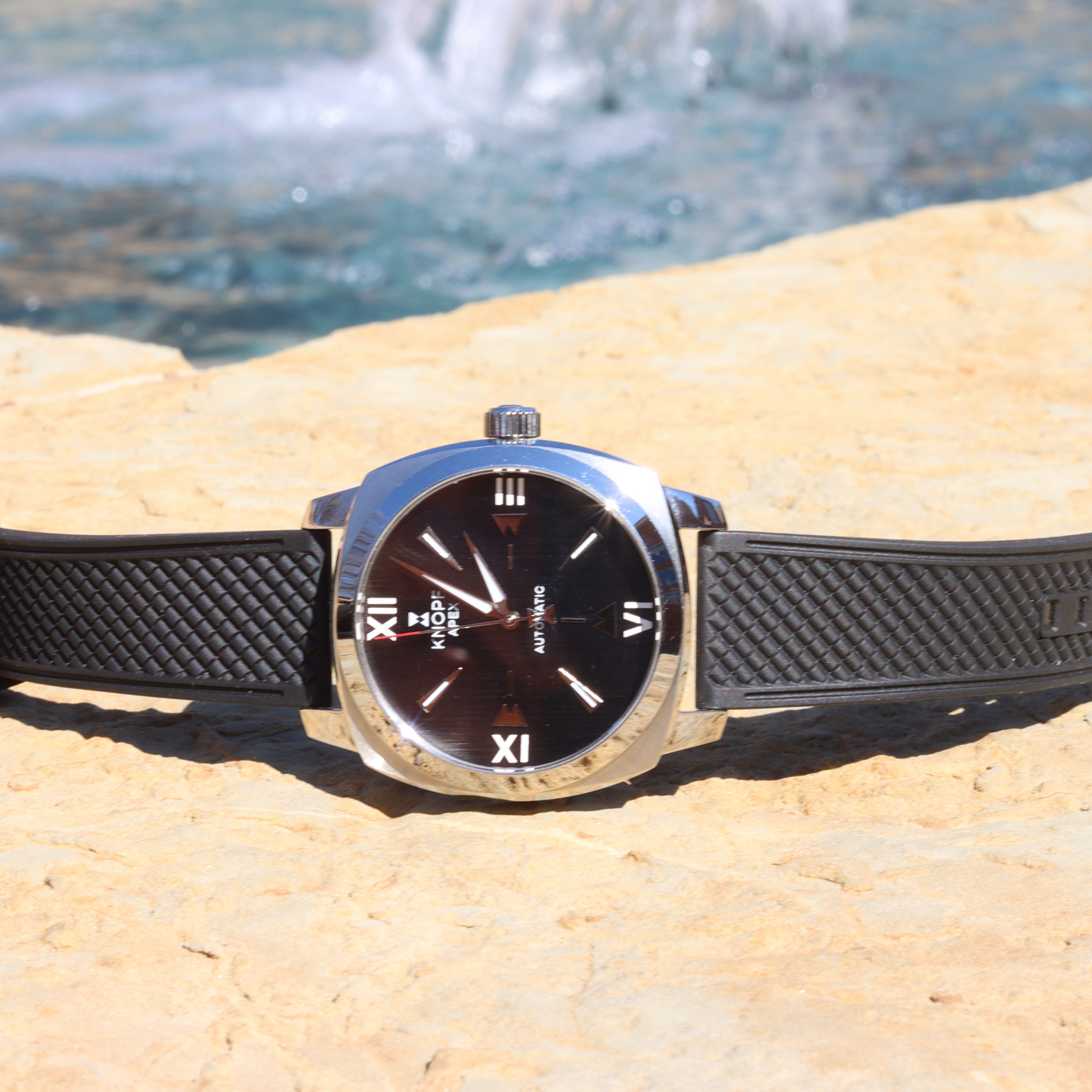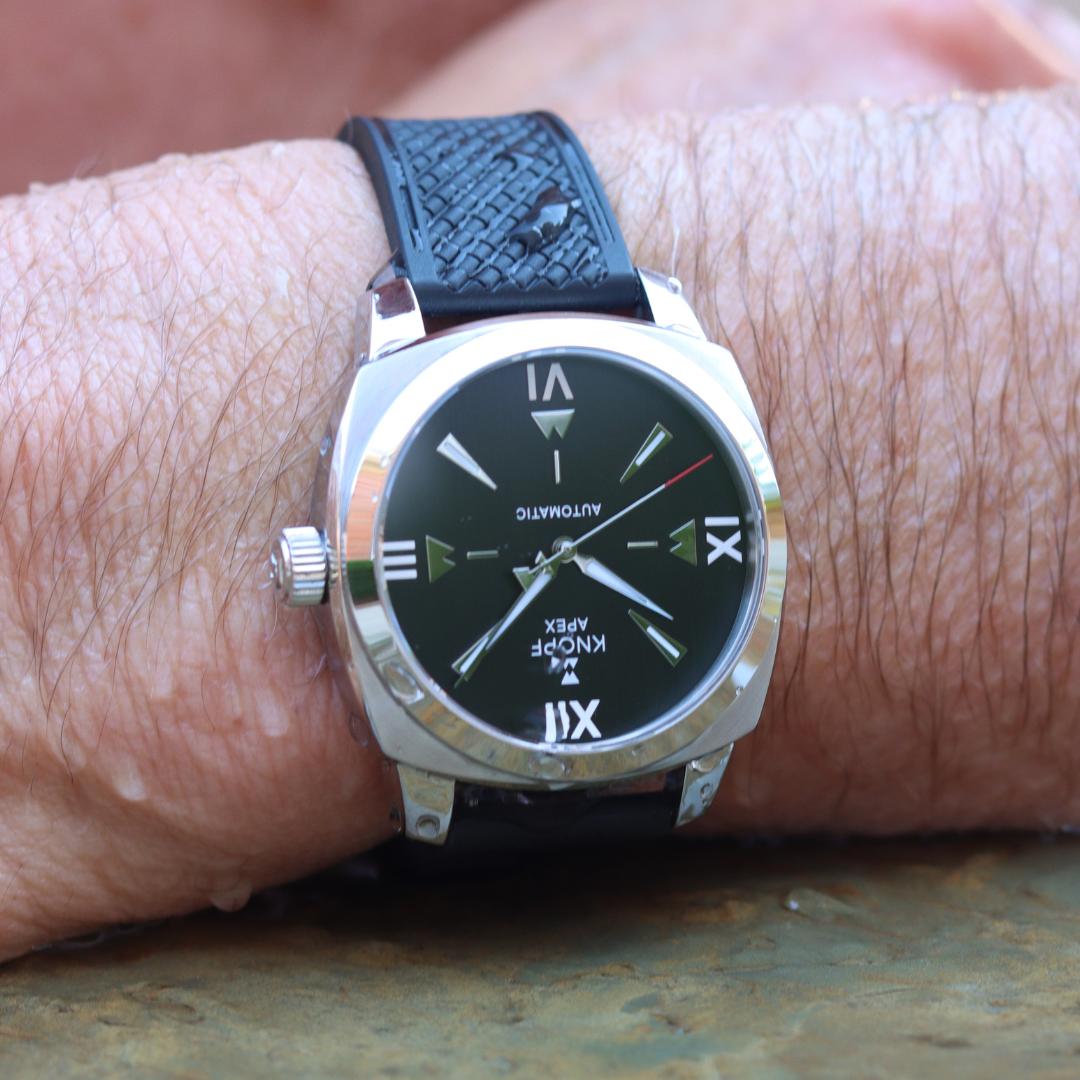he KNOPF APEX isn’t just a watch—it’s a statement. Designed for those who move between worlds, it effortlessly shifts from poolside relaxation to a night of refined sophistication. Its bold 40mm cushion-style case redefines classic design with a modern edge, perfect for the man who dares to be different.