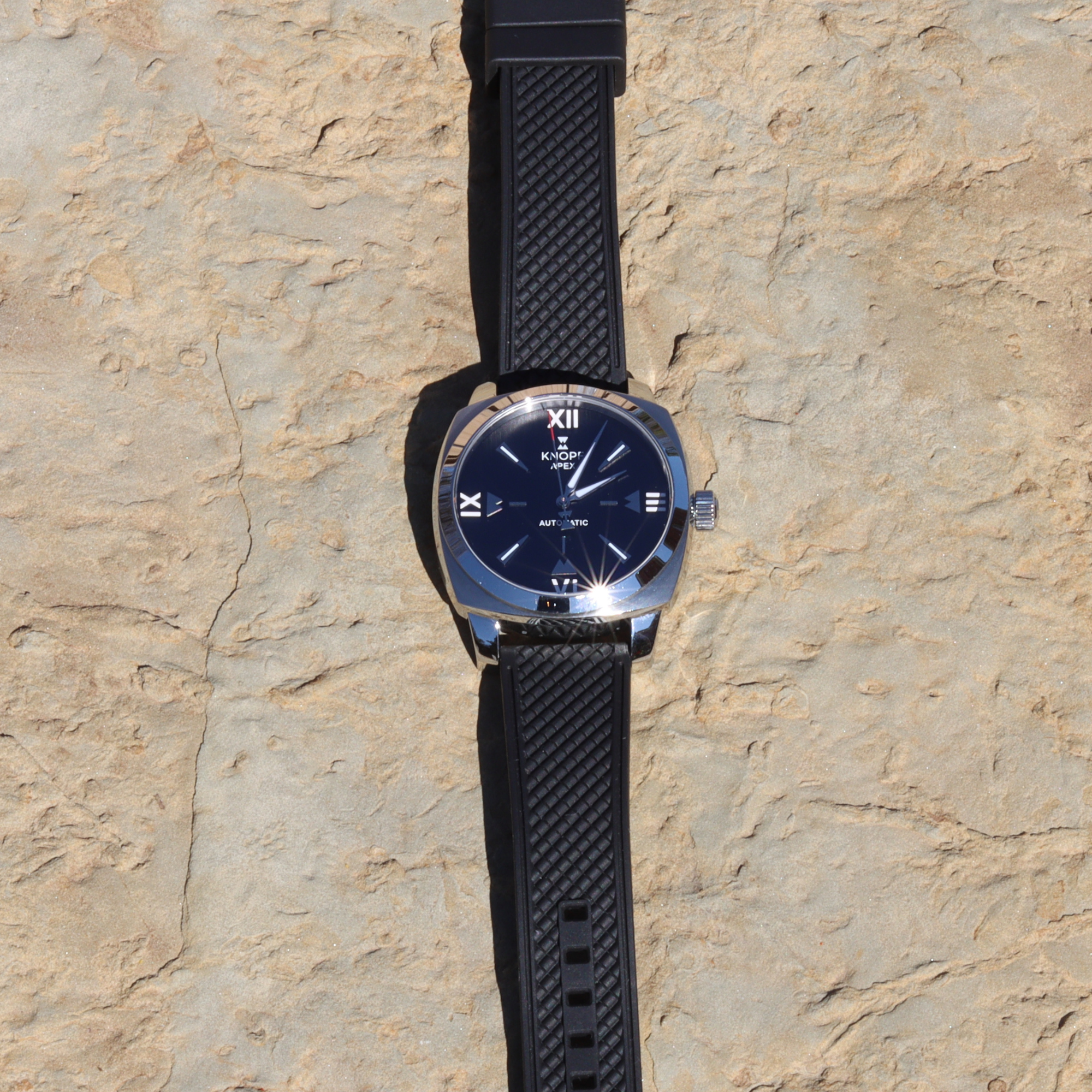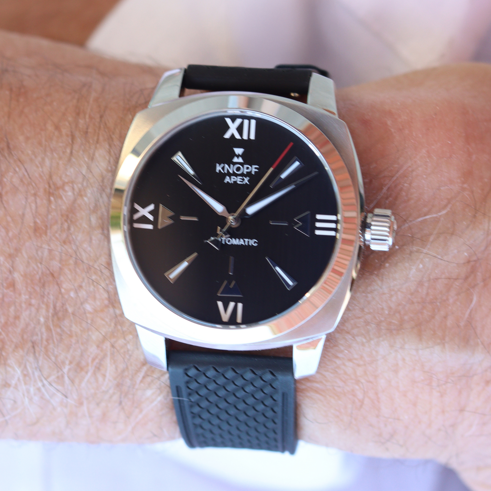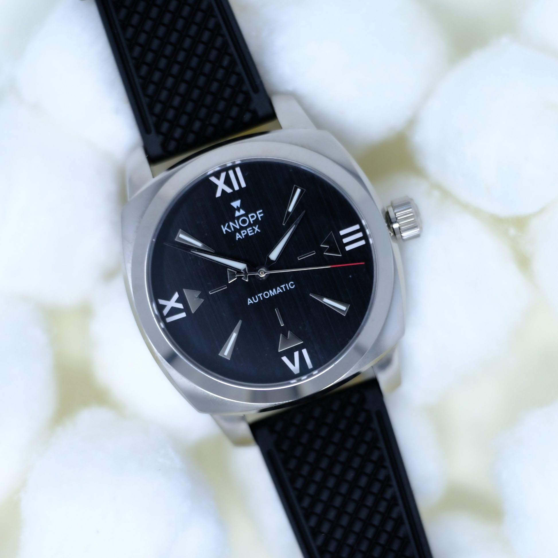 he KNOPF APEX isn’t just a watch—it’s a statement. Designed for those who move between worlds, it effortlessly shifts from poolside relaxation to a night of refined sophistication. Its bold 40mm cushion-style case redefines classic design with a modern edge, perfect for the man who dares to be different.