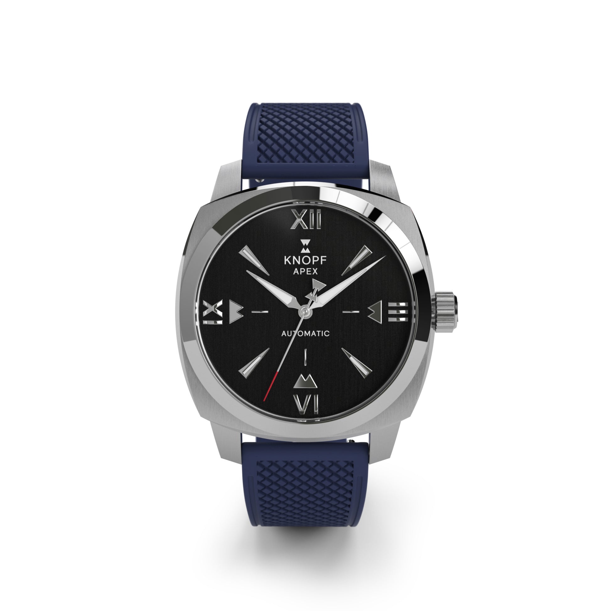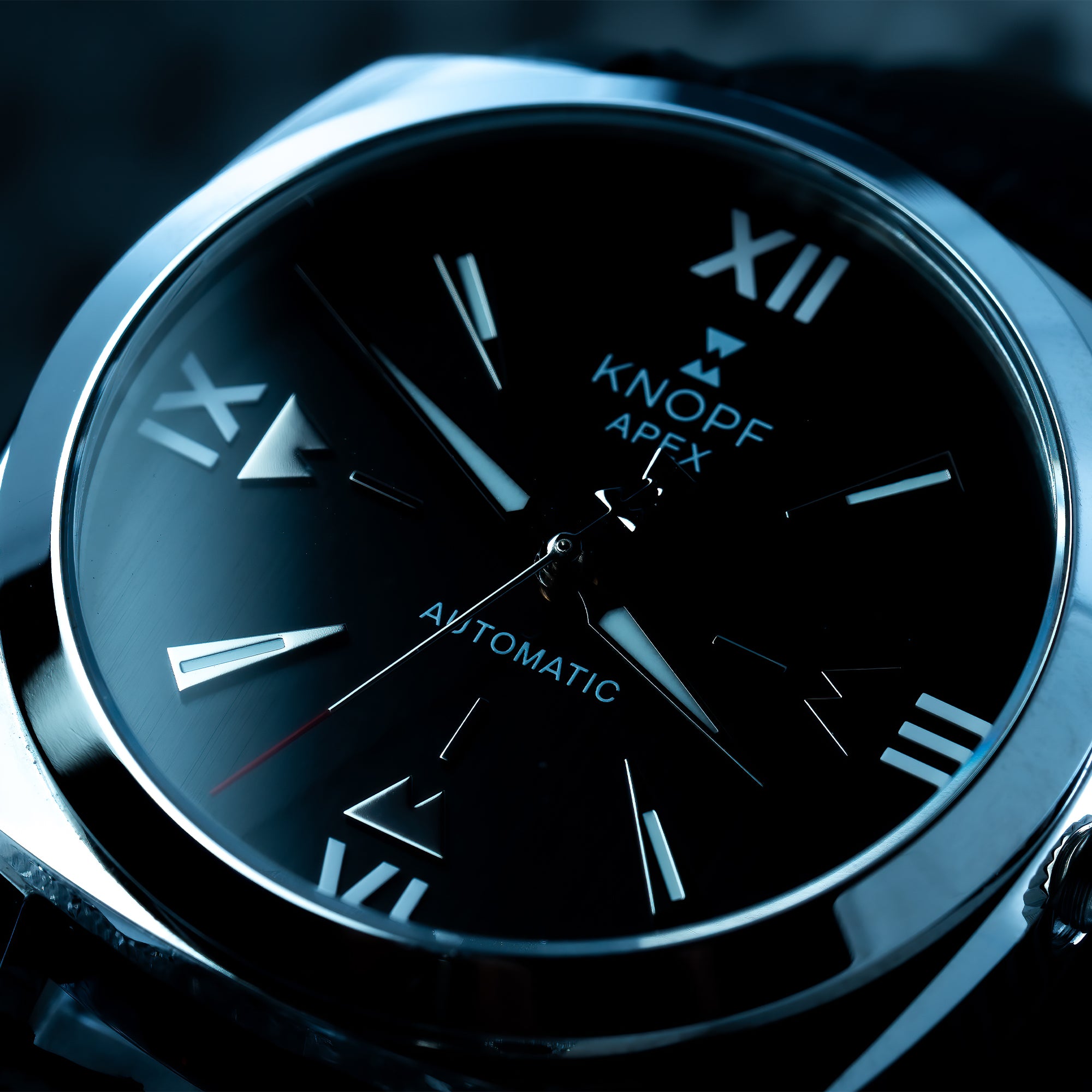 The KNOPF APEX showcases a handcrafted dial that’s unmistakably ours—bold, refined, and built to stand out. Deep vertical brushing and striking geometric forms create a mesmerizing play of light, turning every glance into an experience. Designed to command attention, this is no ordinary watch—it’s a game changer.