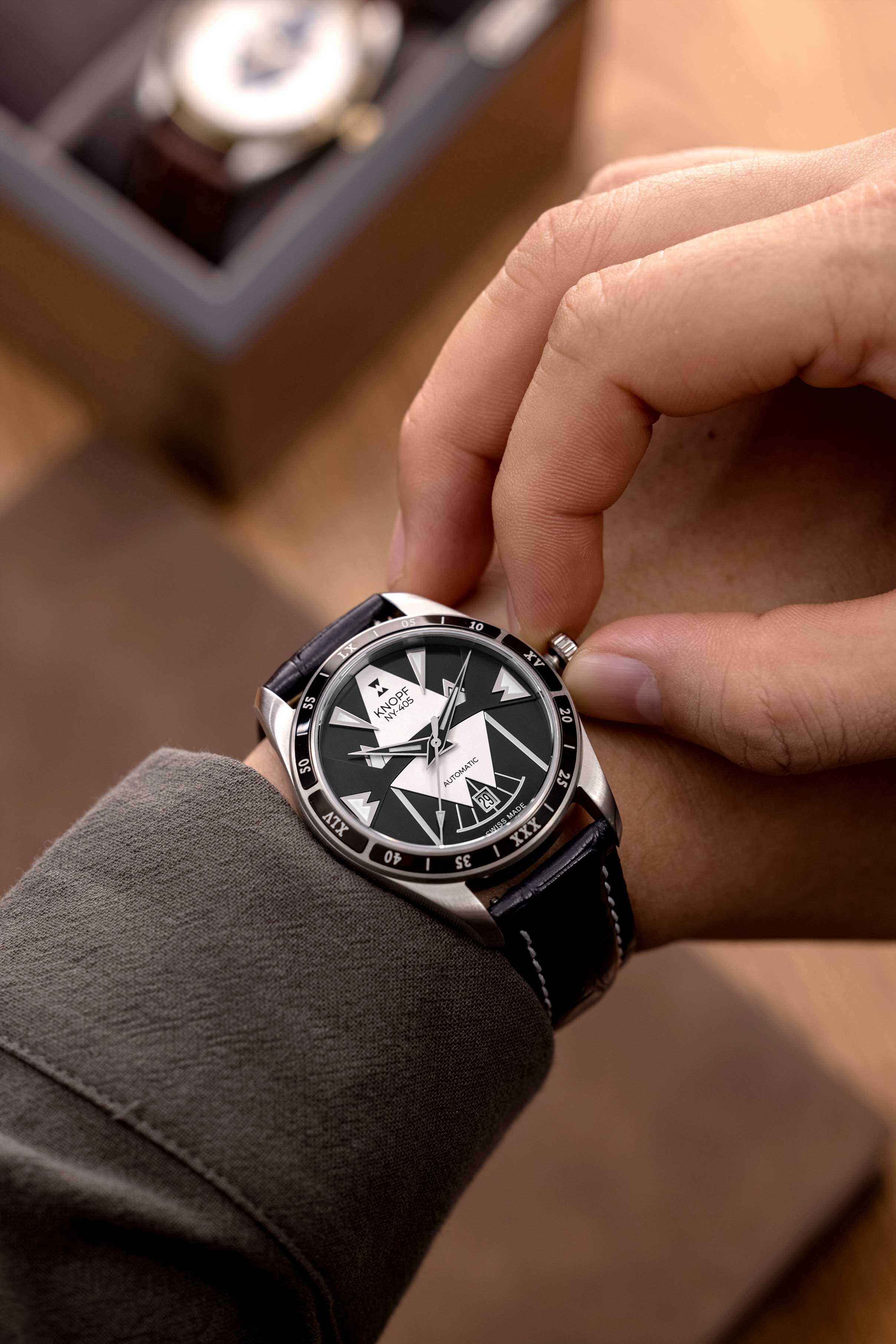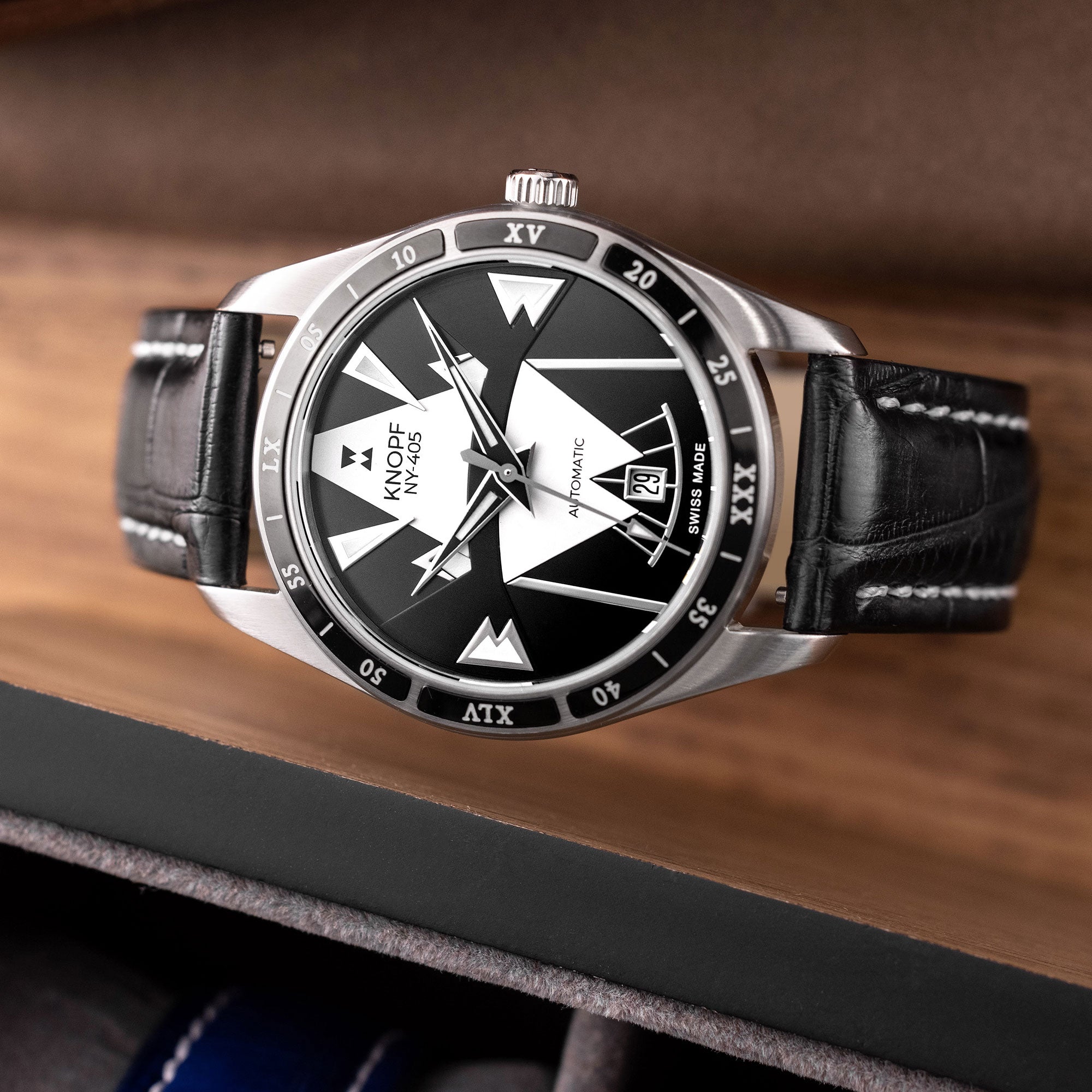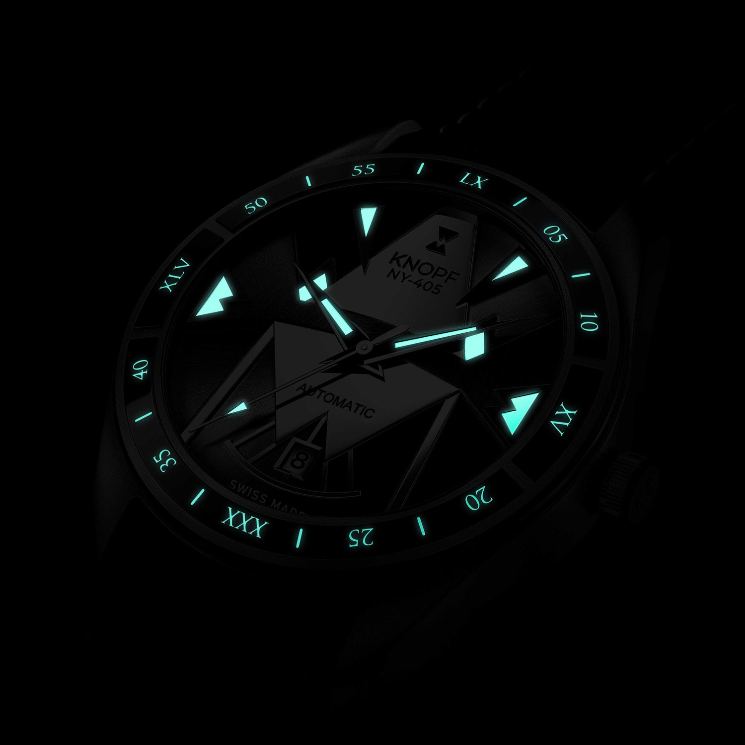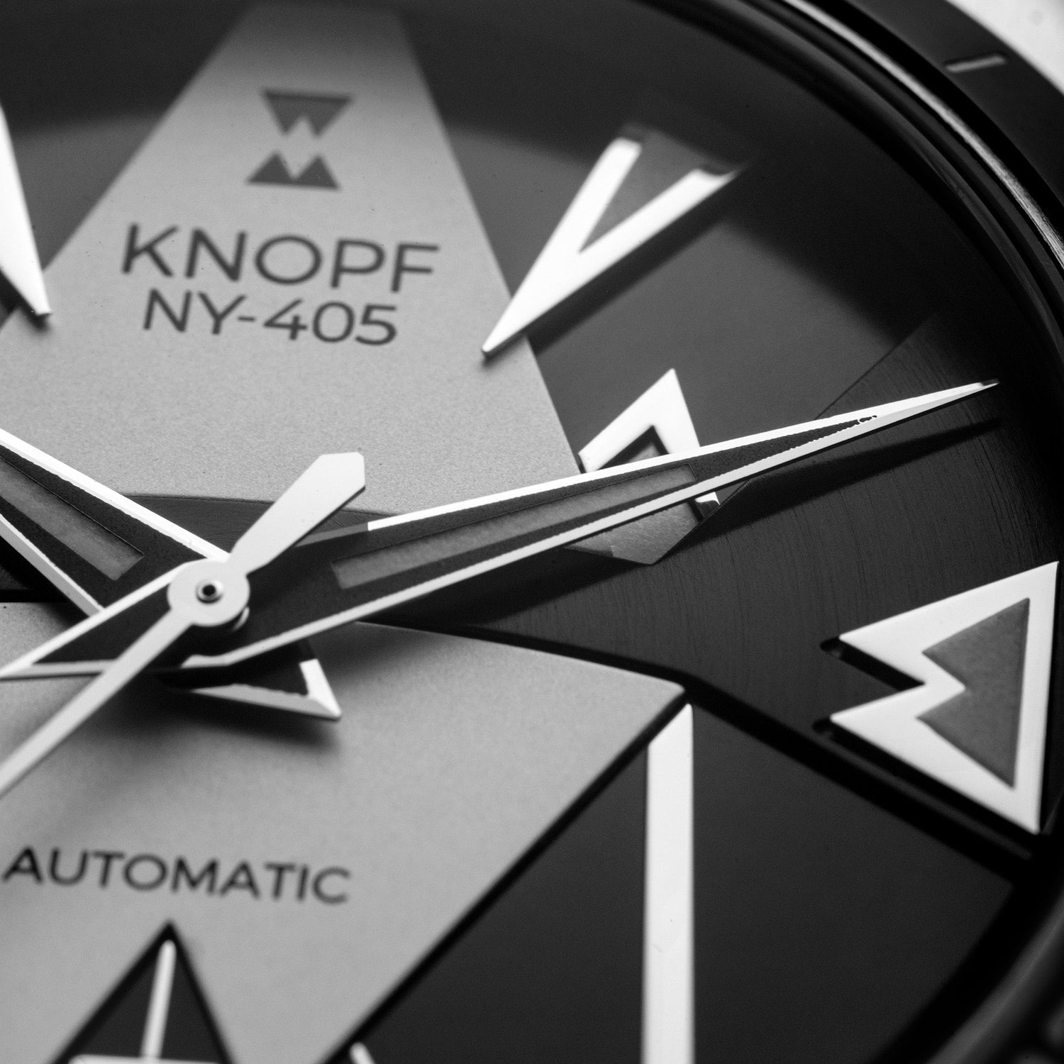 The KNOPF NY-405 showcases a handcrafted dial that’s unmistakably ours—bold, refined, and built to stand out. The sunray brushing and striking multi-layered geometric forms create a mesmerizing play of light, turning every glance into an experience. Designed to command attention, this is no ordinary watch—it’s a game changer.