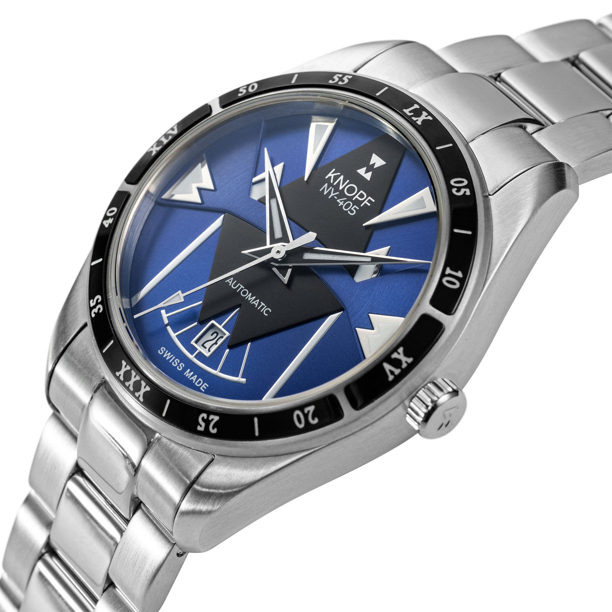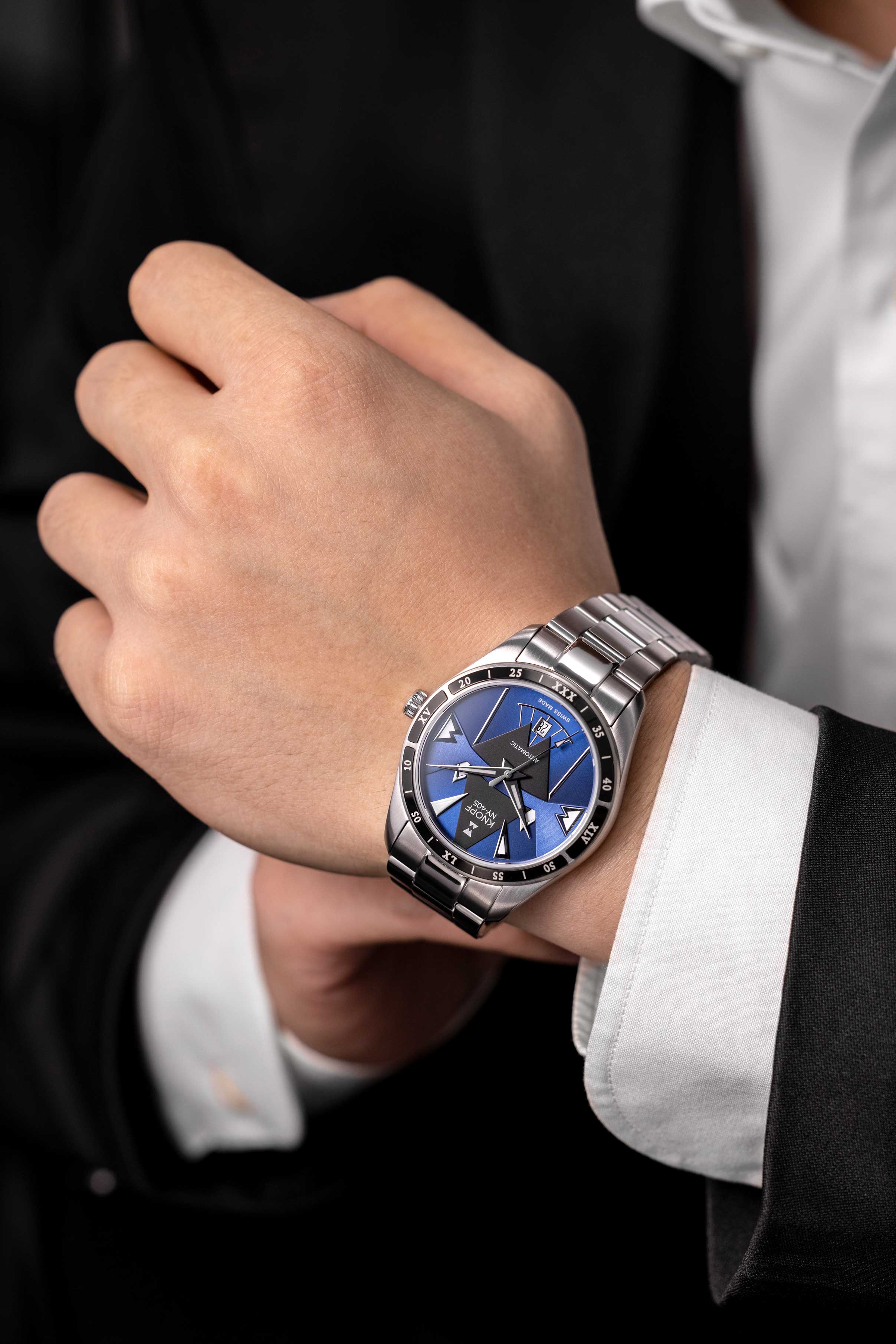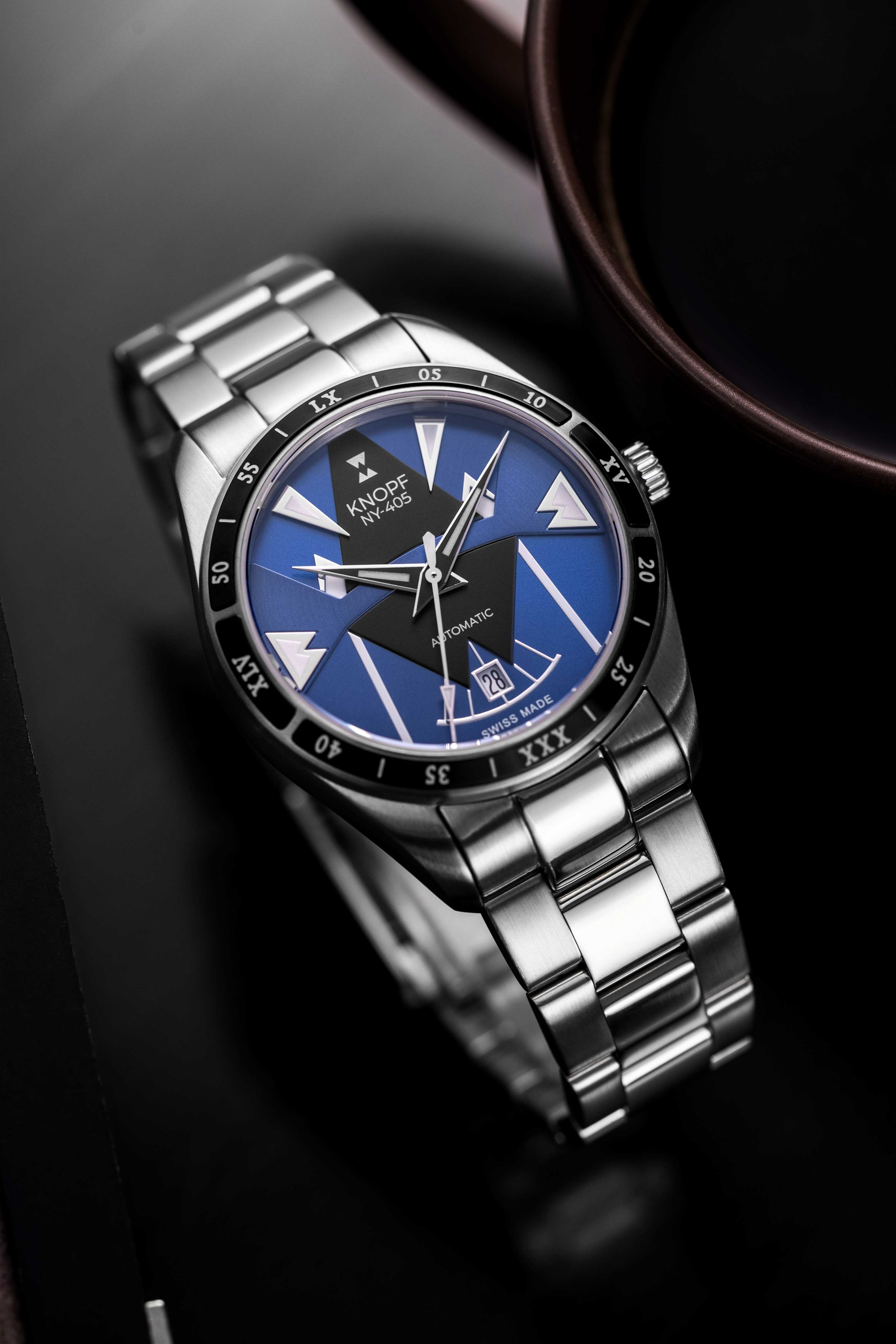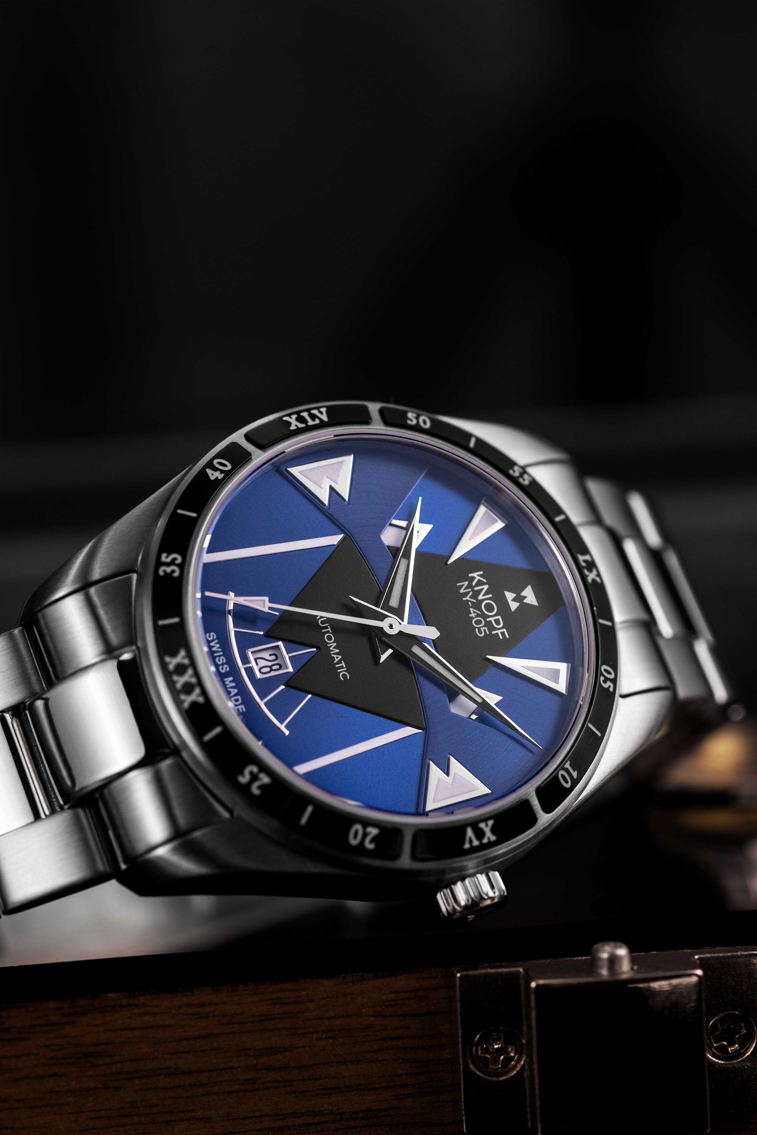 The KNOPF NY-405 showcases a handcrafted dial that’s unmistakably ours—bold, refined, and built to stand out. The sunray brushing and striking multi-layered geometric forms create a mesmerizing play of light, turning every glance into an experience. Designed to command attention, this is no ordinary watch—it’s a game changer.