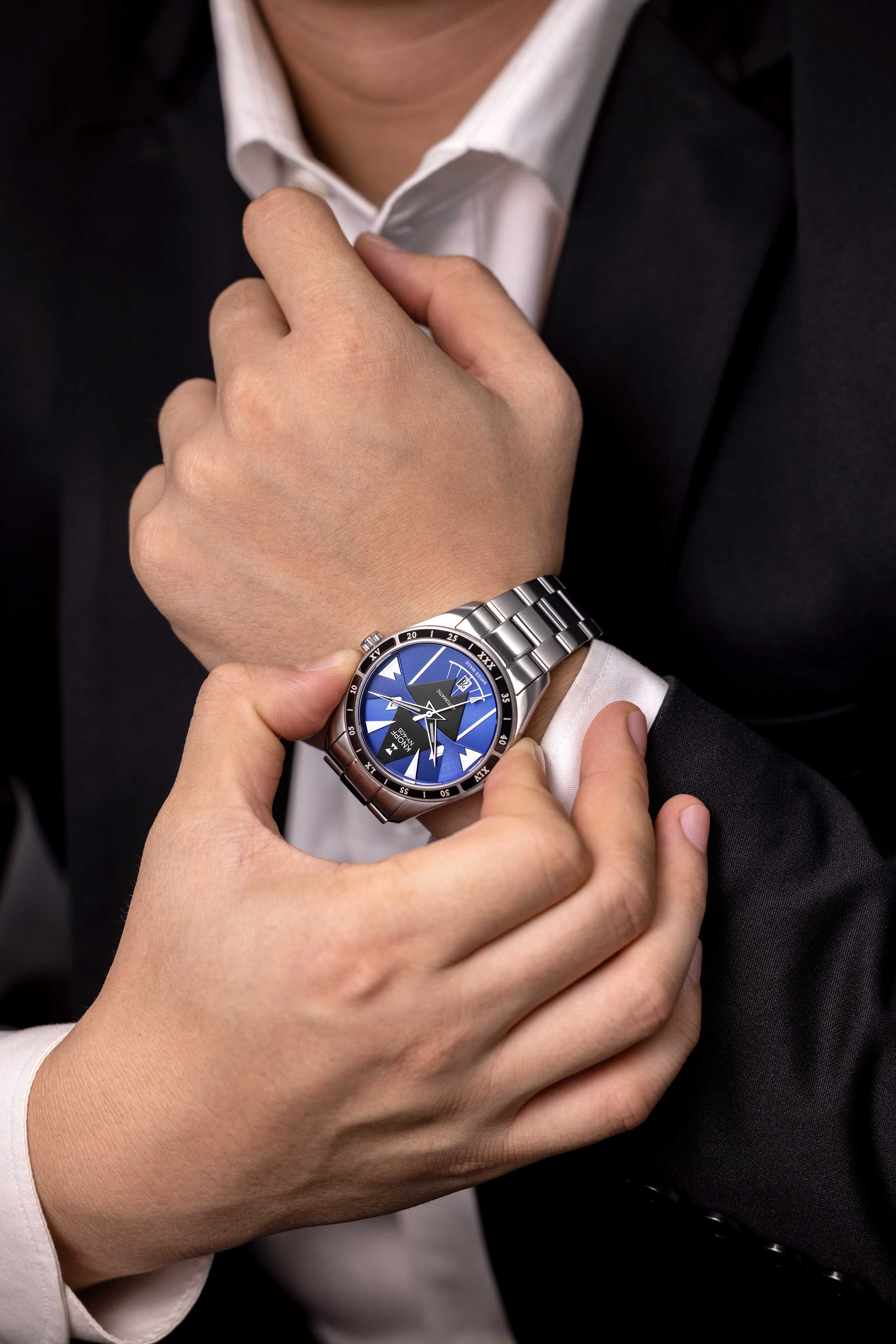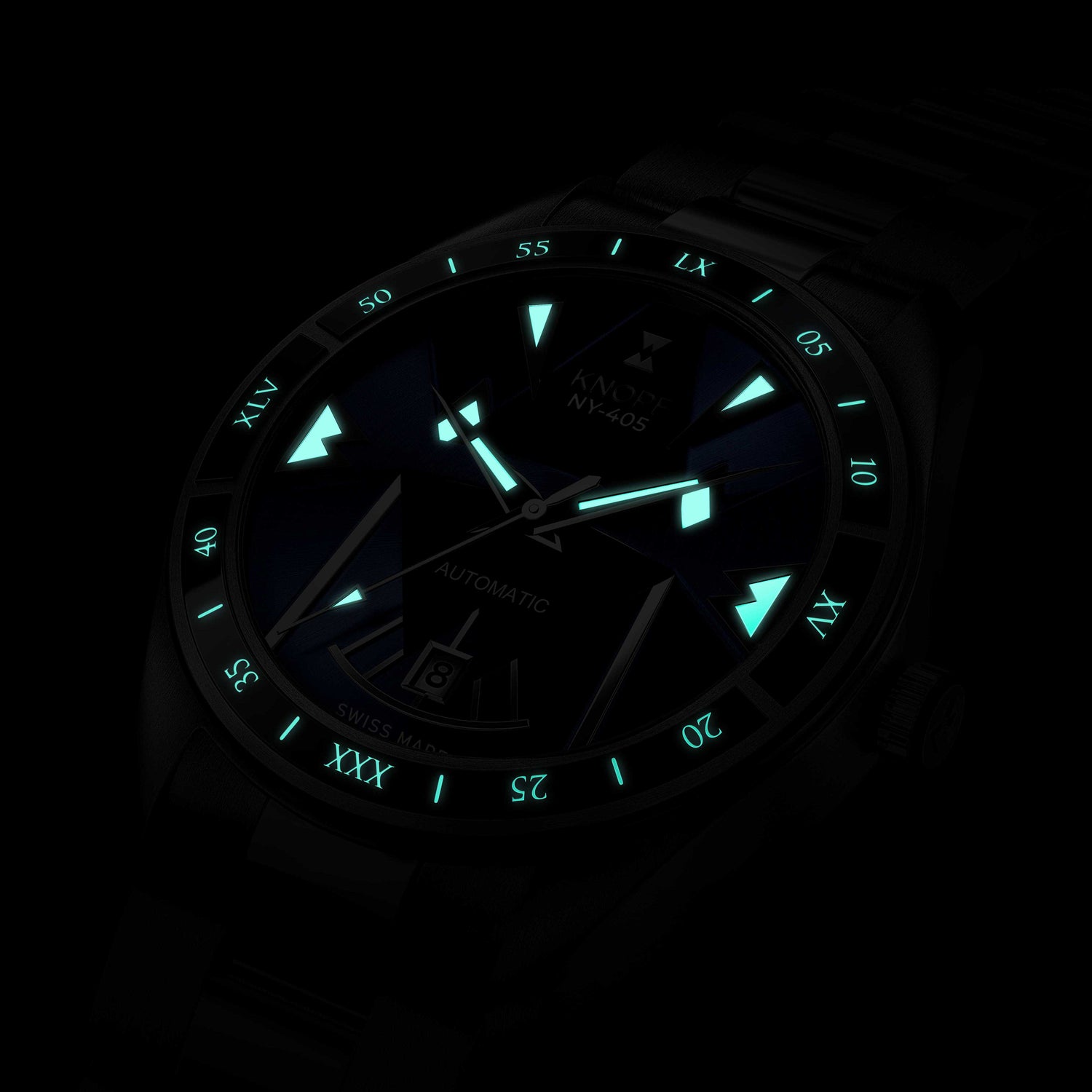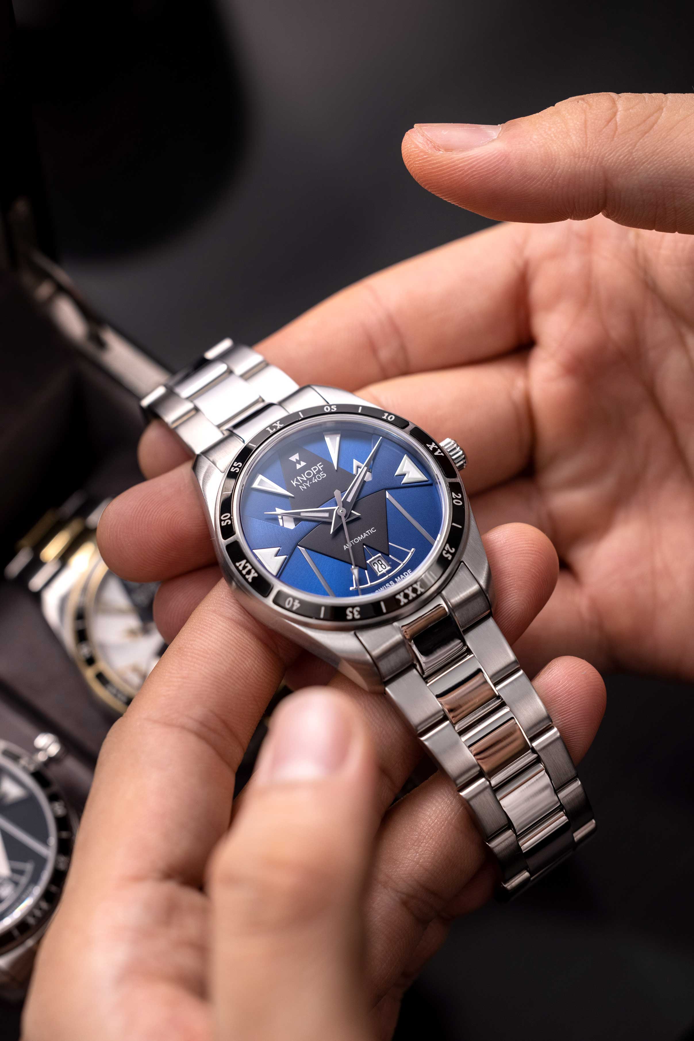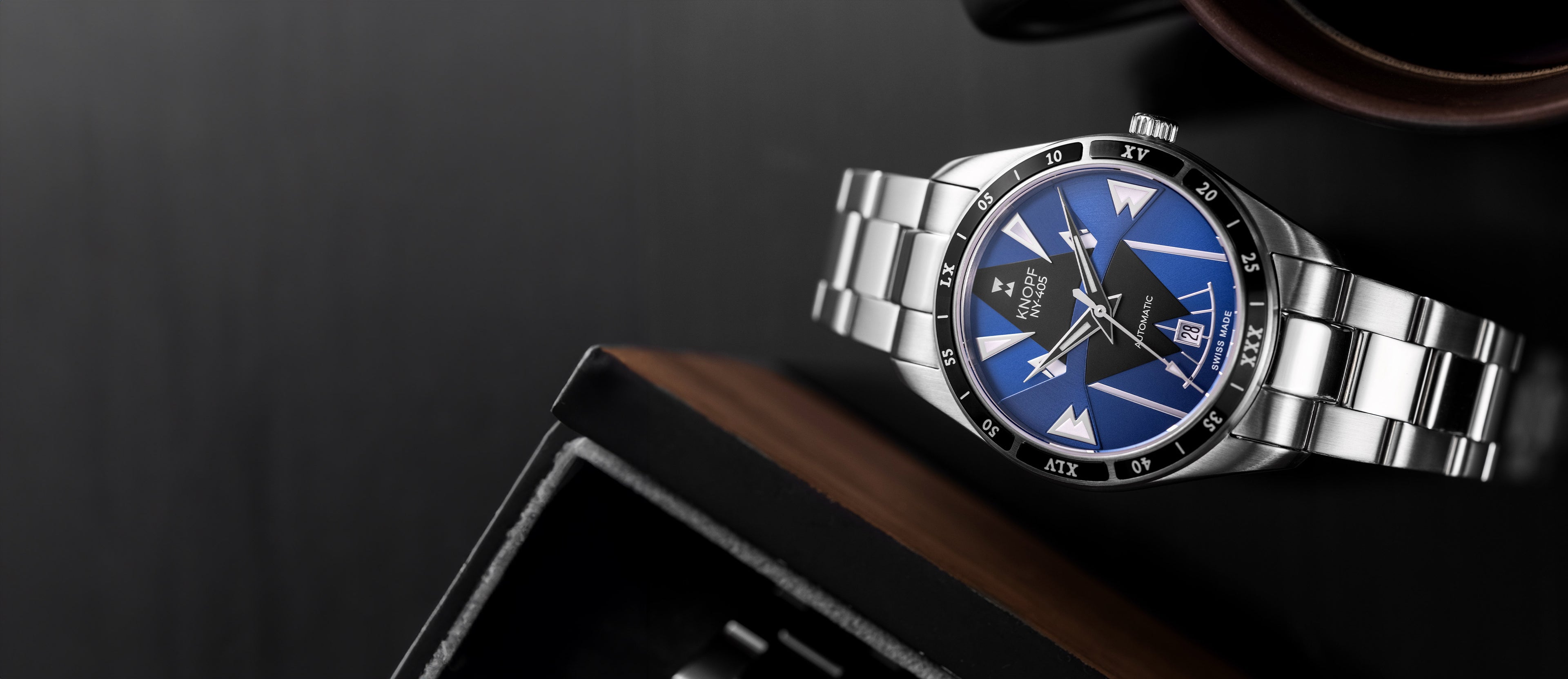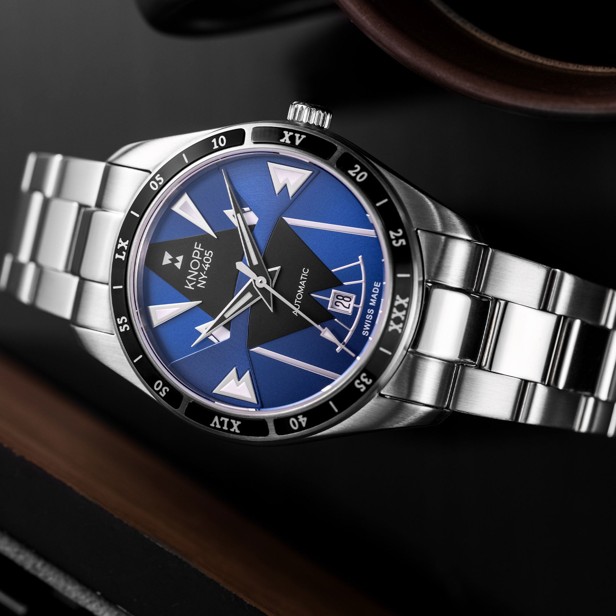 The KNOPF NY-405 showcases a handcrafted dial that’s unmistakably ours—bold, refined, and built to stand out. The sunray brushing and striking multi-layered geometric forms create a mesmerizing play of light, turning every glance into an experience. Designed to command attention, this is no ordinary watch—it’s a game changer.