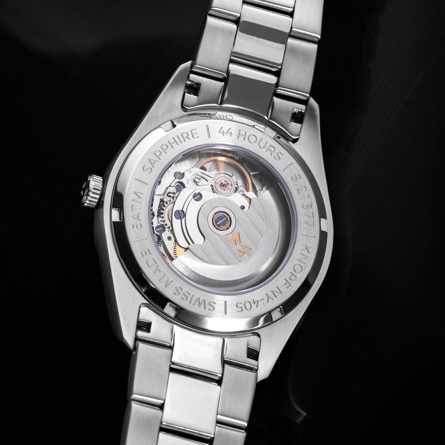 At the core of the KNOPF NY-405 is the Swiss made STP 1-11—legendary for its accuracy and toughness. This automatic movement keeps you on time, no matter where the journey takes you. Dependable, precise, and built to last—because your watch should be as unstoppable as you are.