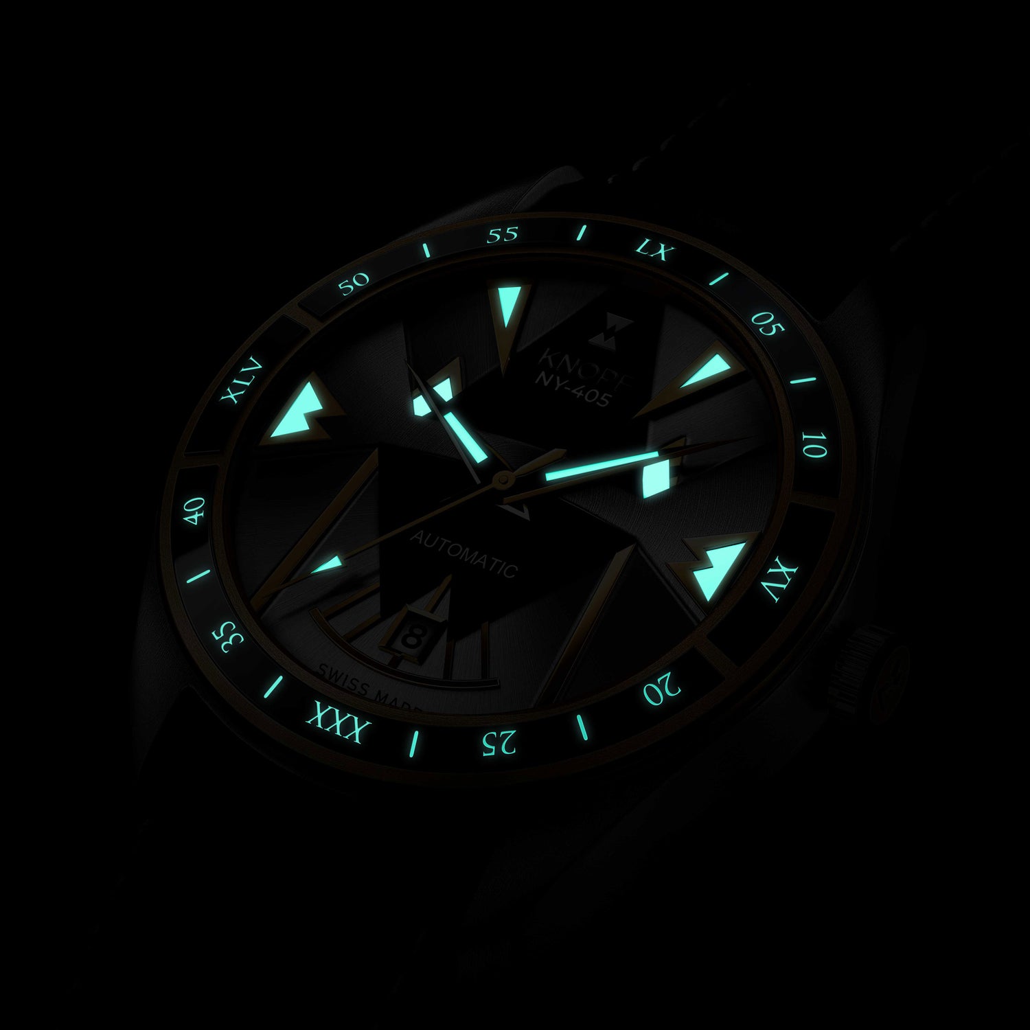 At the core of the KNOPF NY-405 is the Swiss made STP 1-11—legendary for its accuracy and toughness. This automatic movement keeps you on time, no matter where the journey takes you. Dependable, precise, and built to last—because your watch should be as unstoppable as you are.