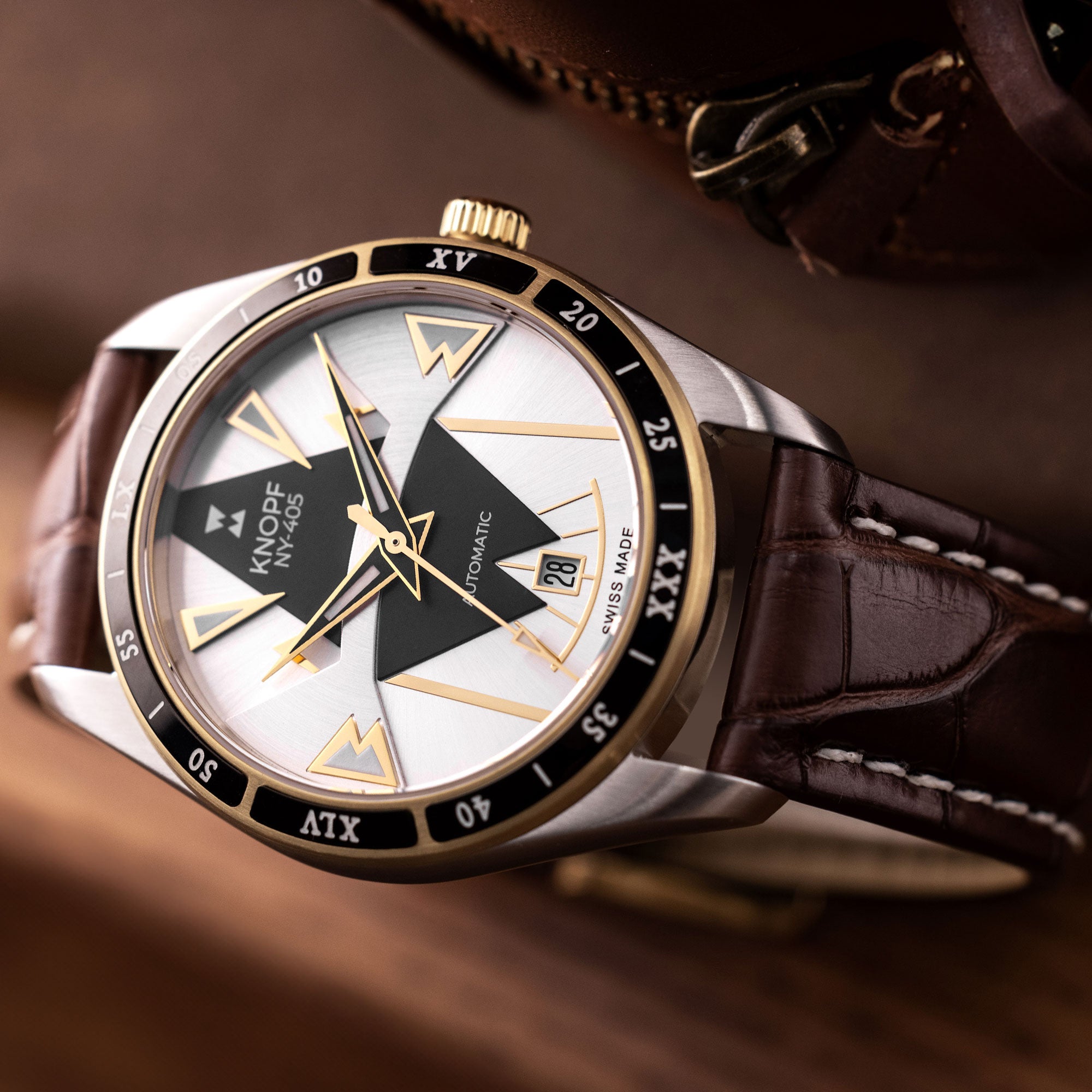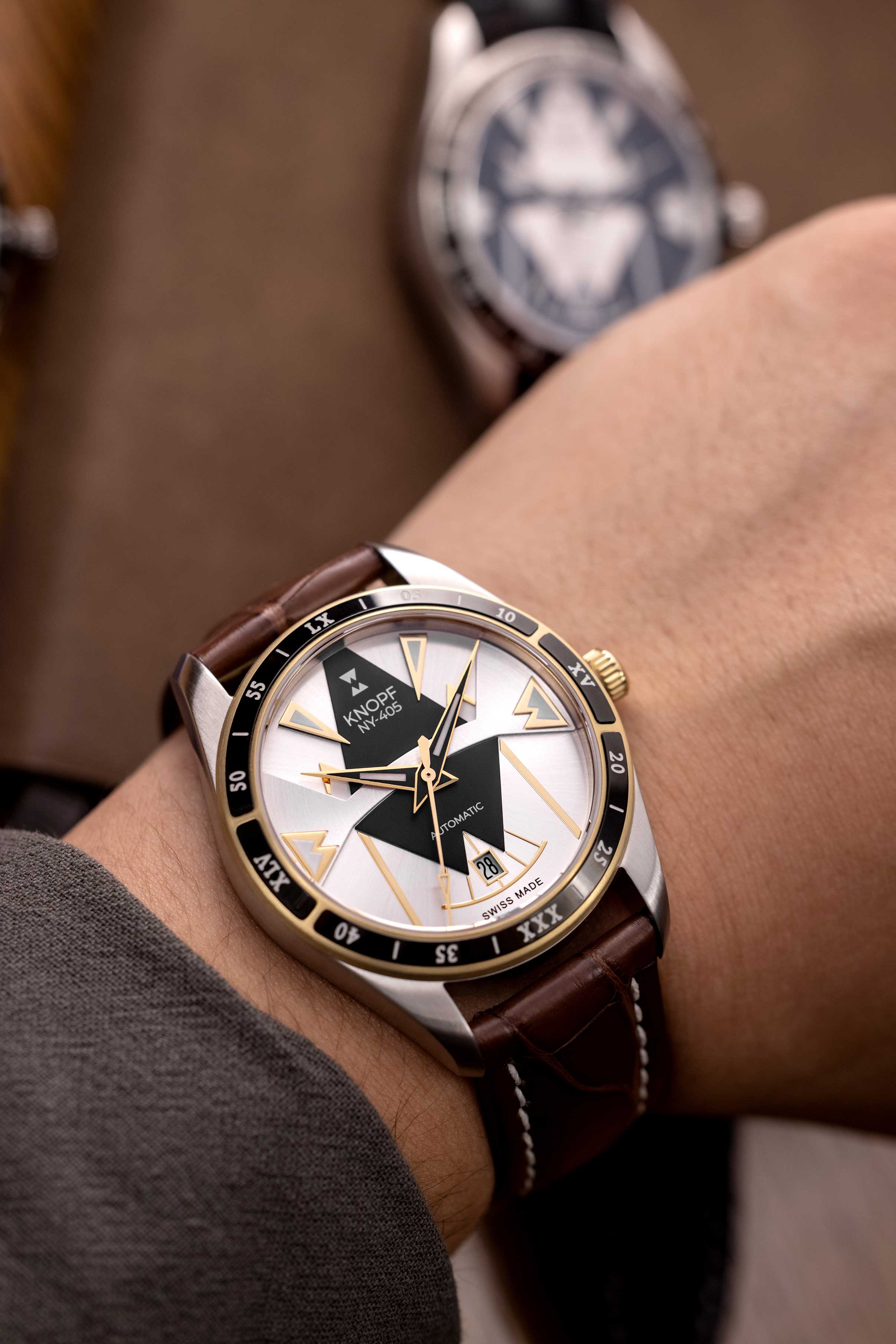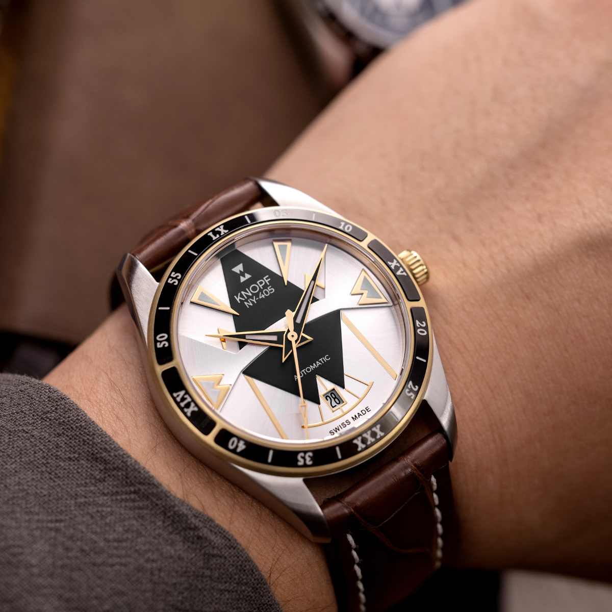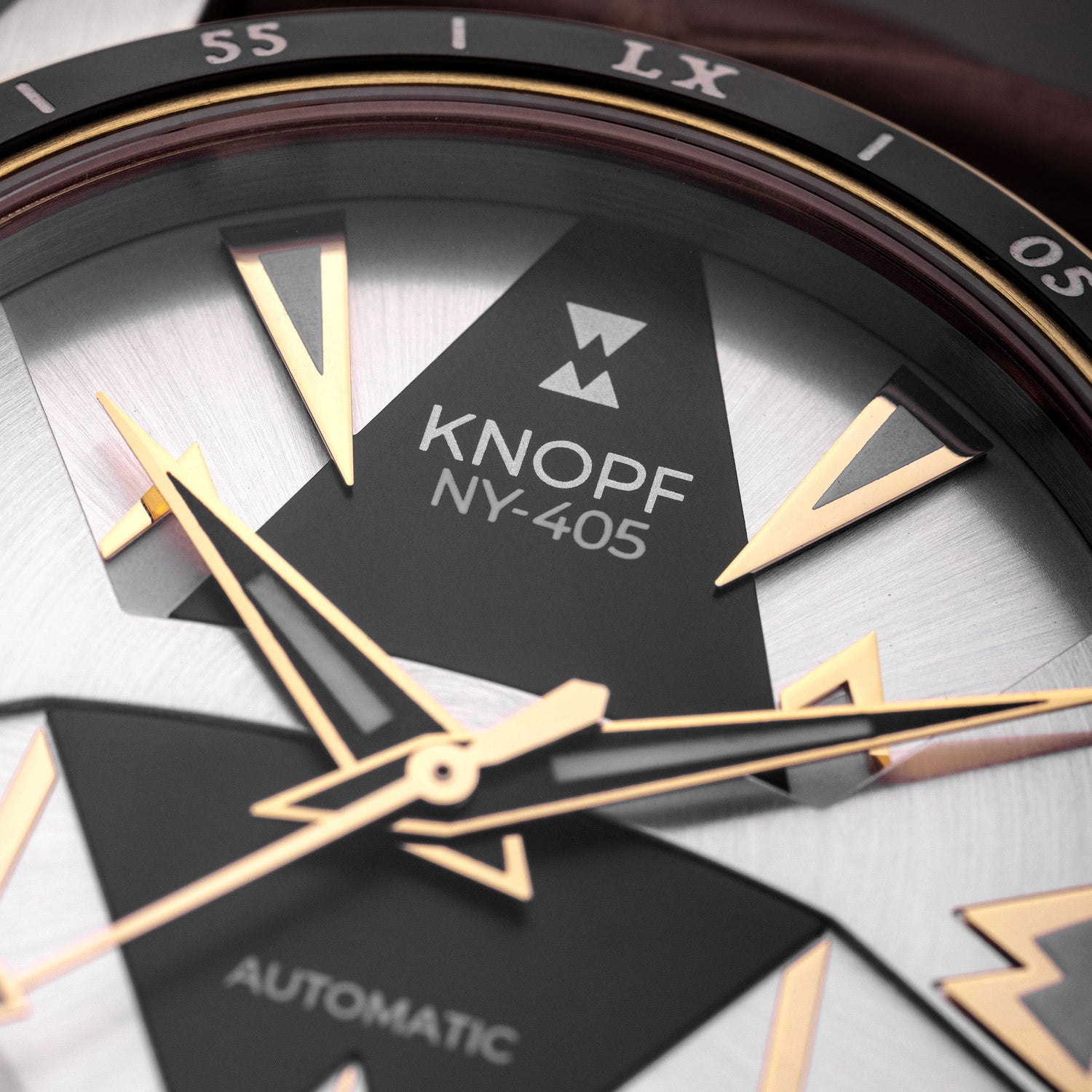 The KNOPF NY-405 showcases a handcrafted dial that’s unmistakably ours—bold, refined, and built to stand out. The sunray brushing and striking multi-layered geometric forms create a mesmerizing play of light, turning every glance into an experience. Designed to command attention, this is no ordinary watch—it’s a game changer.